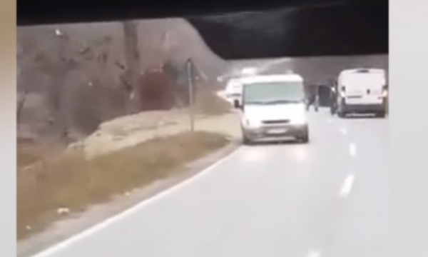 Pamje se si furgoni me para grabitet në pikë të ditës në rrugën Gjilan-Prishtinë