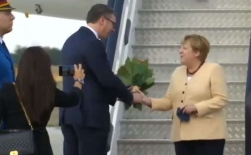 Vuçiq e pret me lule Merkelin