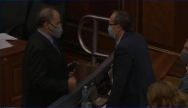 Avdullah Hoti, Agim Veliu e Driton Selmanaj në sallë të Kuvendit, në pritje të nisjes së seancës për votimin e presidentit