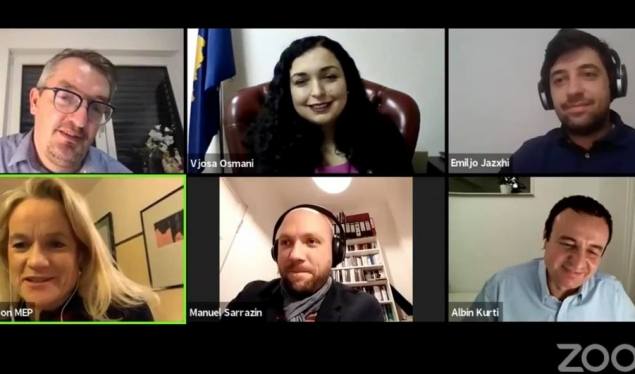 Vjosa Osmani e Albin Kurti bashkë me Viola von Cramon diskutojnë për situatën politike