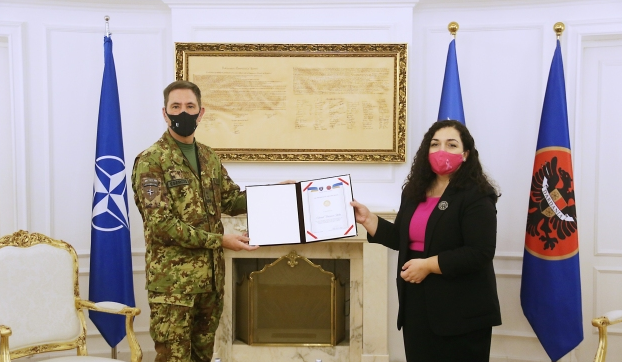 Osmani dekoron me Medaljen Presidenciale Ushtarake, ish-komandantin e KFOR-it, Michele Rissi