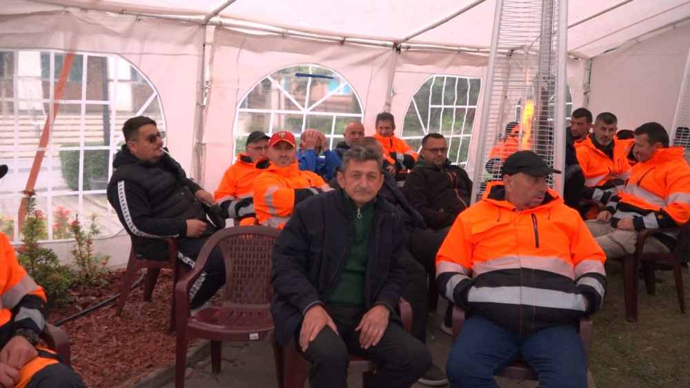 Punëtorët e “Pastrimit” në ditën e katërt të grevës para ndërtesës së Komunës së Prishtinës
