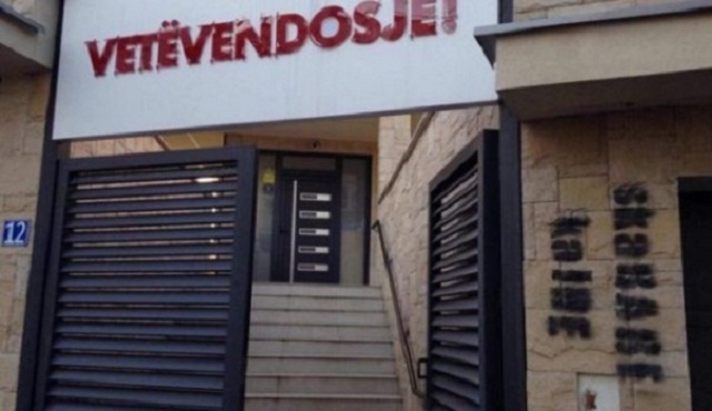 Thellohet hendeku, grafite kundër Albin Kurtit te selia e VV-së