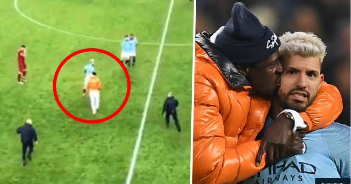 Mendy ndiqet nga sigurimi i stadiumit pasi hyri në fushë për të festuar me bashkëlojtarët fitoren e Cityt ndaj Liverpoolit