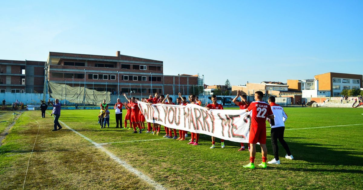 Dashuria për klubin nuk harrohet kurrë, tifozi gjilanas me propozimin më unik në botë për të dashurën në stadium: A do të martohesh me mua? (Foto)