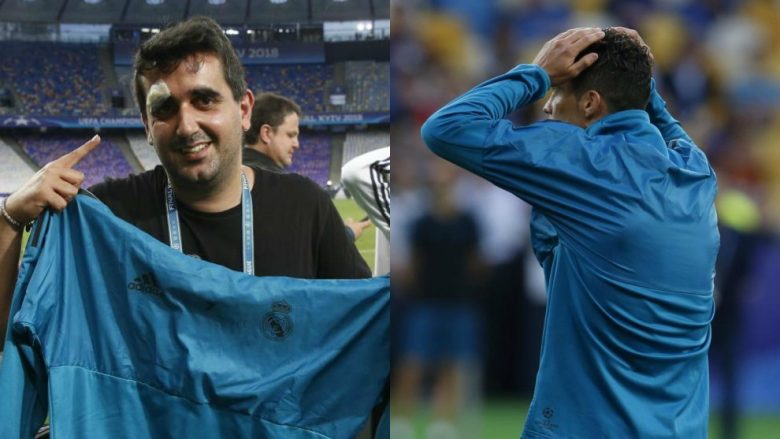 Cristiano Ronaldo godet kameramanin dhe e lëndon, në fund i jep fanellën dhuratë