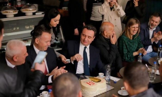 Kurti feston 51-vjetorin në Mitrovicë, surprizohet me tortë në formë zemre me portretin e tij