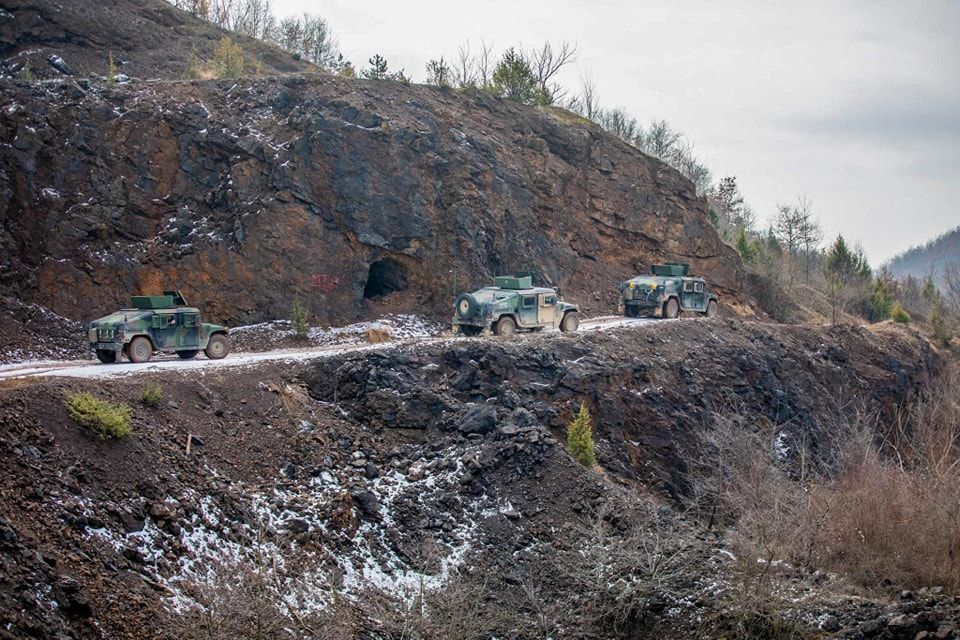 Ushtarët amerikanë patrullojnë me autoblinda përgjatë vijës kufitare me Serbinë
