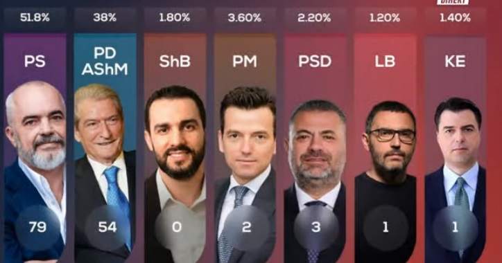 PS e Edi Ramës siguron 79 mandate, PD e Sali Berishës 54 sosh (VIDEO)