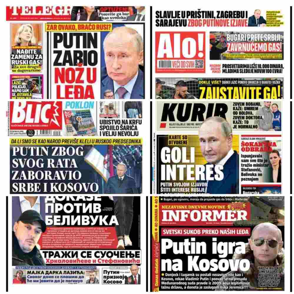 Pas deklaratës së Putinit për Kosovën, mediet e afërta me Vuçiqin e sulmojnë atë