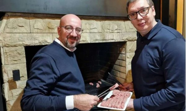 Vuçiqi dhe Presidenti i KE-së, Michel, shijojnë darkën me qebapë pas takimit në Beograd