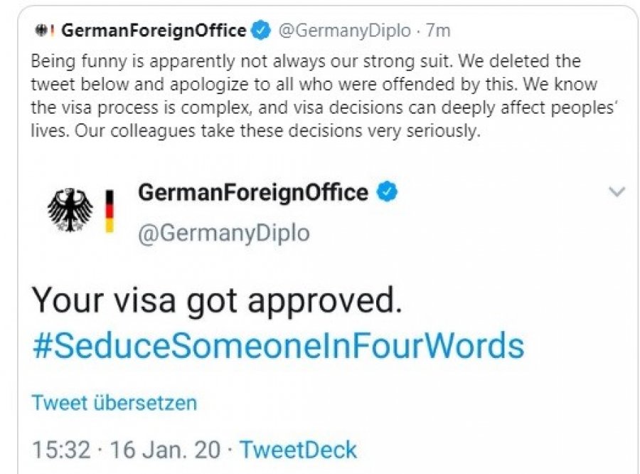 “Viza juaj është aprovuar” – Ministria e jashtme gjermane kërkon falje për mesazhin e pashije
