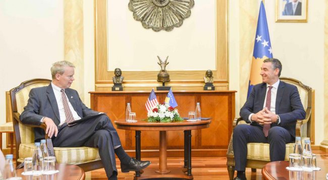 Kryeparlamentari Veseli priti në takim lamtumirës ambasadorin amerikan, Delawie