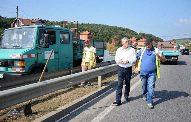 Gati për ceremoninë e prerjes së shiritit për hapjen e urës për këmbësorët te lumi Ibër