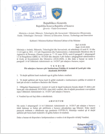 Bajrami: Ky është vendimi për bursa të reja për studentët elitarë
