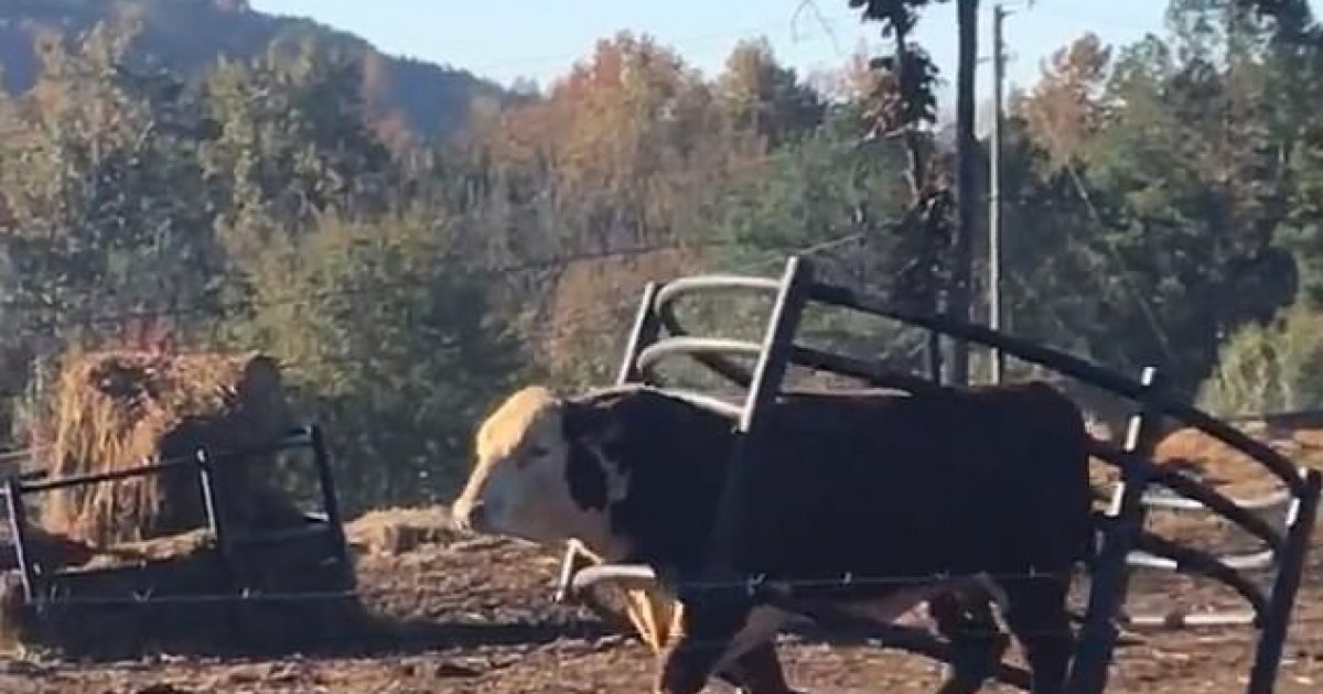 Demi gjigant ecte i qetë edhe pse i kishte ngecur në qafë rrethi i sanës (Video)