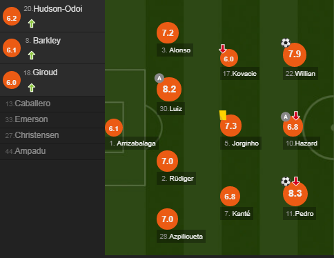 Lojtari më i vlerësuar i ndeshjes ishte sulmuesi Pedro, i cili pas golit dhe paraqitjes së mirë u vlerësua me notë 8.3.