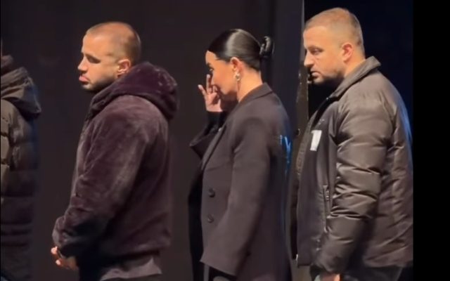 Këngëtarja Dafina Zeqiri e shoqëruar nga burri i saj Kreshniku dhe kunati, po marrin pjesë në ceremoninë mortore lamtumirëse ndaj këngëtarit Shpat Kasapi.