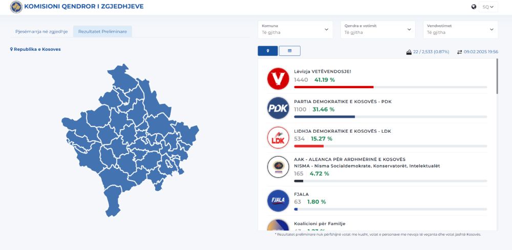 Komisioni Qendror Zgjedhor (KQZ) ka nisur publikimin e rezultateve preliminare të zgjedhjeve parlamentare të vitit 2025.