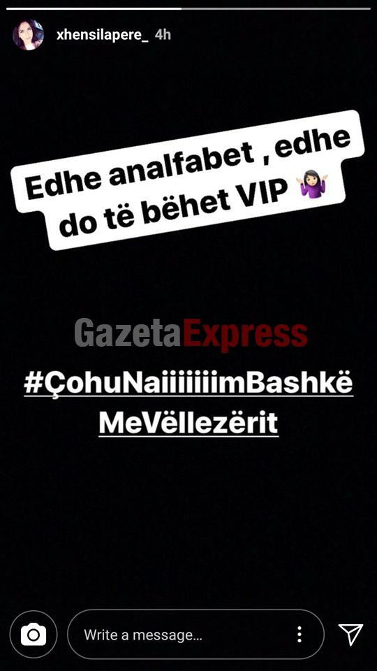 ‘Kjo tipja kerkon vemendje nga mua , dhe nga mbeshtetsit e mi. Shiko ti goc e dashur, ke kaq kohe qe me mish e me shpirt po mundohesh te jesh dikush, por sa vjen po behesh askush. Kush tha ty qe une e mbaj veten per “ VIP “ ????. E kuptoje qe po ben cmos kaq kohe te dalesh neper portale, per lajme etj etj. Ke kaq kohe po te ha vagina me mua , se kuptoje perse ? ????. Ore vertet dalin ne portale keta, kur me sulmojne mua?