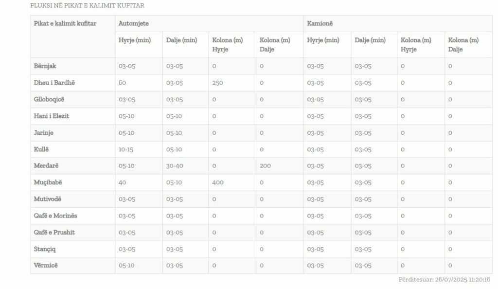Sipas të dhënave të Qendrës Kombëtare për Menaxhim Kufitar, në pikëkalimet e tjera, pritjet më të gjata vijojnë nga 10-15 minuta.