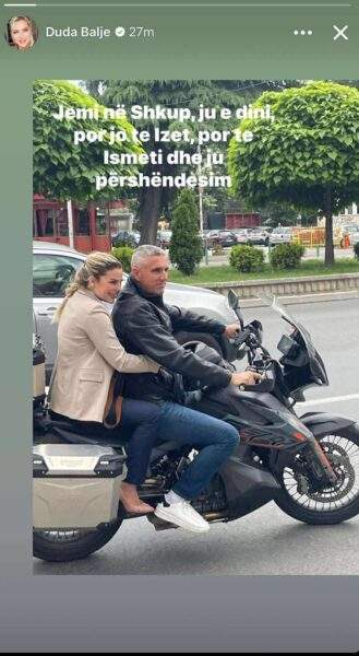 Deputetja Duda Balje është lajmëruar nga Shkupi duke publikuar një fotografi me motoçikletë dhe siç duket në shoqërimin e bashkëshortit të saj.