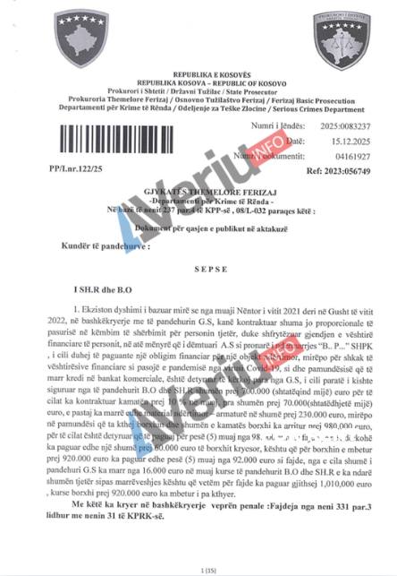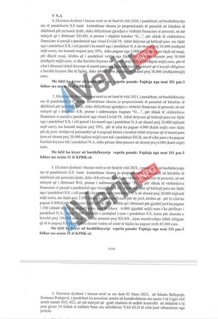 Në aktakuzën e siguruar nga Veriu.info, e cila është ngritur më 15 dhjetor 2025, Bashkim Osmani – pronar i kompanisë “Dona Laberion” e Shefik Rexhepi – pronar i kompanisë “Euro-Abi”, akuzohen se u kanë dhënë para me fajde të dëmtuarëve: Abdurrahim Hasani (Bashkimi Projekt), Xhevdet Shala (Golden), Naim Berisha (Berisha Group), Besim Gashi (NTP Blendi).