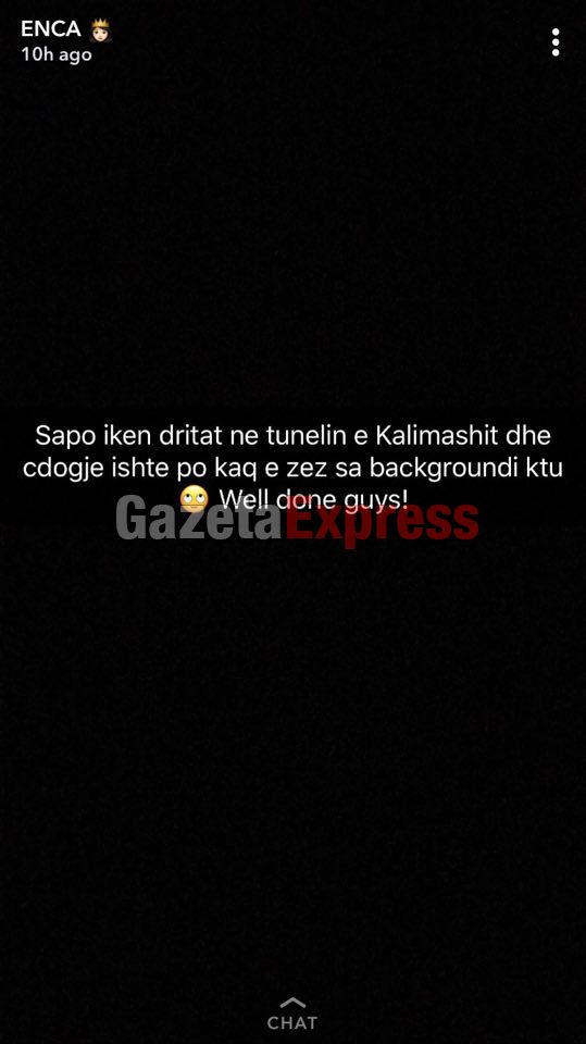 Në një postim në Snap Chat ajo ka treguar se është bllokuar në tunelin e Kalimashit.