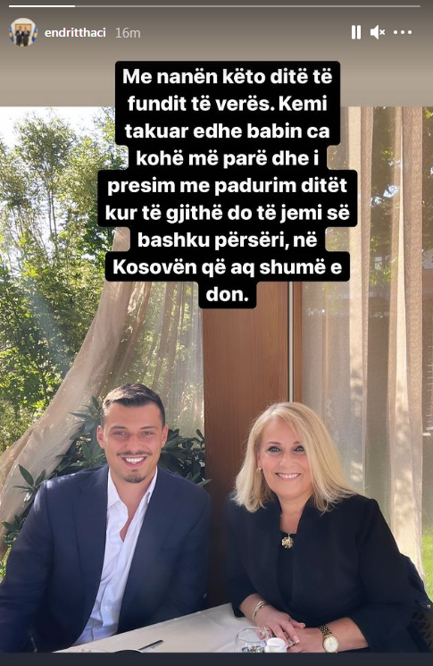 Endrit Thaçi, djali i ish-presidentit Hashim Thaçi përmes një storie në Instagram, ku ka publikuar një foto me nënën e tij ku ka bërë të ditur se ka takuar para ca kohe babain e ti, ish- presidentin Thaçi.