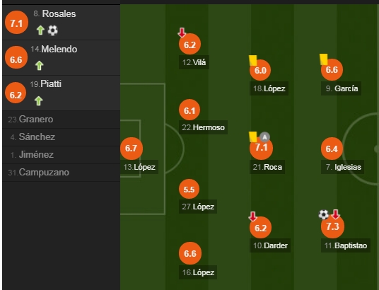 Për Los Blancos shënuan në këtë ndeshje Karim Benzema (4′, 45′), Sergio Ramos (15′) dhe Gareth Bale (67′). Ndërsa golin e vetëm për vendasit e shënuan Leo Baptistao (25′) dhe Roberto Rosales (81′).