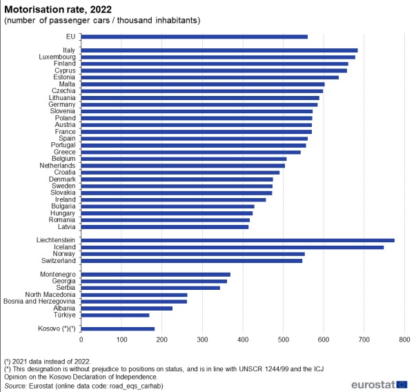 Ndër shtetet anëtare të BE-së me normat më të larta të motorizimit, d.m.th. makina pasagjerësh për një mijë banorë;