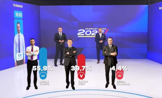 Pas tij renditet Faton Peci nga LVV-ja me 39.7%, ndërsa Gezim Plakolli nga LDK-ja ka marrë 4.4% të votave sipas këtij sondazhi paraprak.