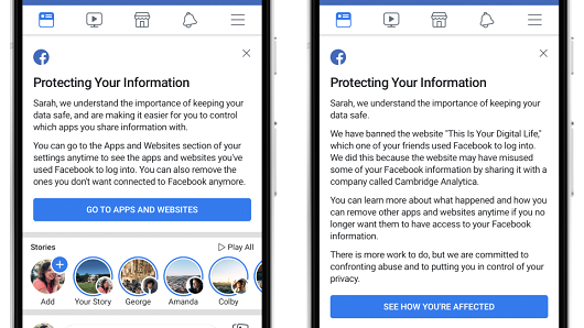 Gjithashtu 2.2 miliardë përdoruesit do të marrin një njoftim “Protecting Your Informacion” me një link i cili tregon se cilat aplikacione që kanë përdorur kanë akses në informacionet e tyre.