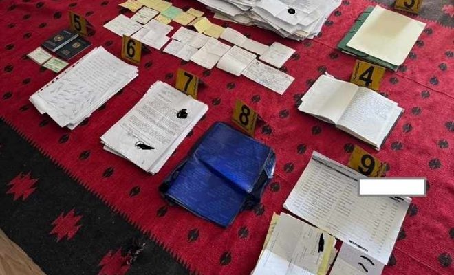 Gjatë aksionit janë sekuestruar dokumente që lidhen me rastin, pajisje të përdorura për falsifikim (pesë makina shkrimi të vjetradhe një pajisje “Paper Trimmer”), një revole e tipit Zaragio me 103 fishekë, një telefon iPhone 17 Pro, një orë dore Rolex dhe një zinxhir doreRolex.