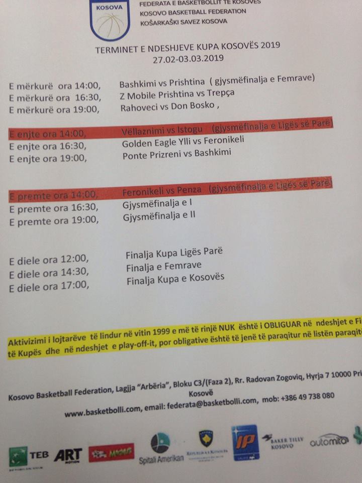 “Ne besojmë që palestra do të jetë gati në muajin shkurt me të gjitha elementet. Ne besojmë që palestra do t’i plotësojë kriteret e FIBA-as”.
