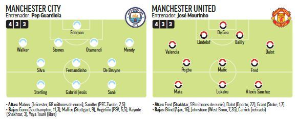 Man City (4-3-3): Ederson; Walker, Stones, Otamendi, Mendy; Silva, Fernandinho, De Bruyne; Sterling, Jesus, Sane.