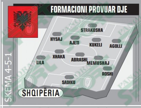 “Panorama Sport” ka publikuar formacionin e mundshëm të Kombëtares shqiptare për ndeshjen kundër Italisë, e cila luhet të premten, në kuadër të eliminatoreve për Botërorin “Rusia 2018”.