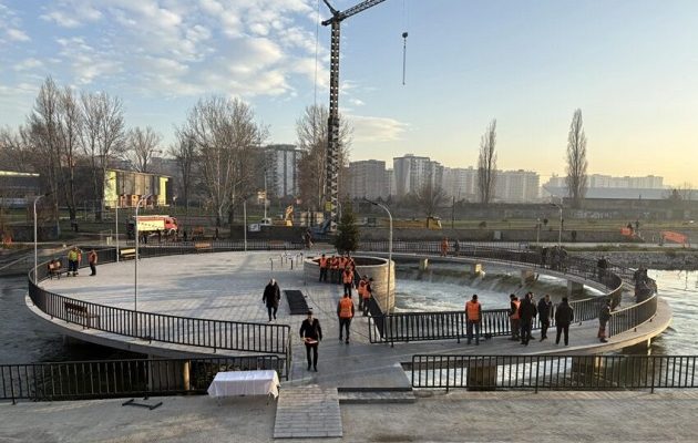 Gati për ceremoninë e prerjes së shiritit për hapjen e urës për këmbësorët te lumi Ibër