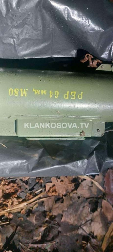 “Sot me dstën 03.02.2025 rreth orës 16.00 derisa policët ishin në patrullim në zonën kufitare në lidhje me informacione për rrugë alternative për kontraband të mallrave, kanë hasur në një qese najloni ngjyrë e zezë në të cilën mund të kishte diçka të dyshimtë. Pasi ka arrit në vend ngjarje edhe forenzika rajonale kemi vërejt se kemi të bëjmë me një raketahedhës M80 e kalibrit 64mm”, njoftoi Elshani për Klankosova.tv