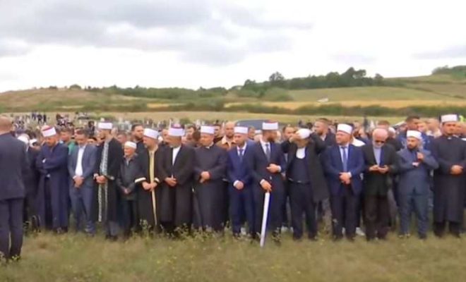 Në varrim janë duke marrë pjesë edhe figura të tjera të larta si ministrja e Jashtme, Donika Gërvalla.