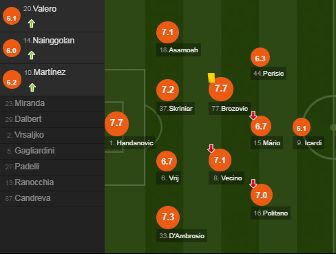 Në anën tjetër, nota më e ulët shkoi për kapitenin e Interit, Mauro Icardi që u vlerësua me notë 6.1.