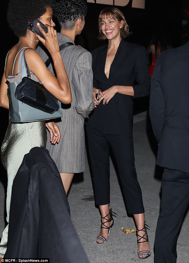 Irina në fakt përveç se ka ndryshuar lookun e saj, në këtë eveniment të rëndësishëm të modës për meshkuj është shfaqur e veshur serioze me një kostum të zi dhe dukej mjaft në formë.