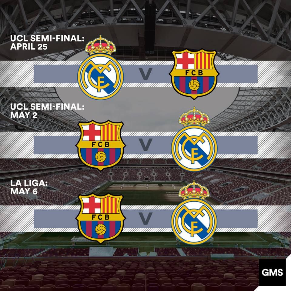 Tashmë ndeshja mes tyre (e dyta sezonale në La Liga) është e caktuar për 6 maj, por nëse katalunasit dhe Los Blanocs vazhdojnë në fazën tjetër të LK-së, atëherë mund të ketë përballje tjera brenda një afati të ngushtë kohorë.