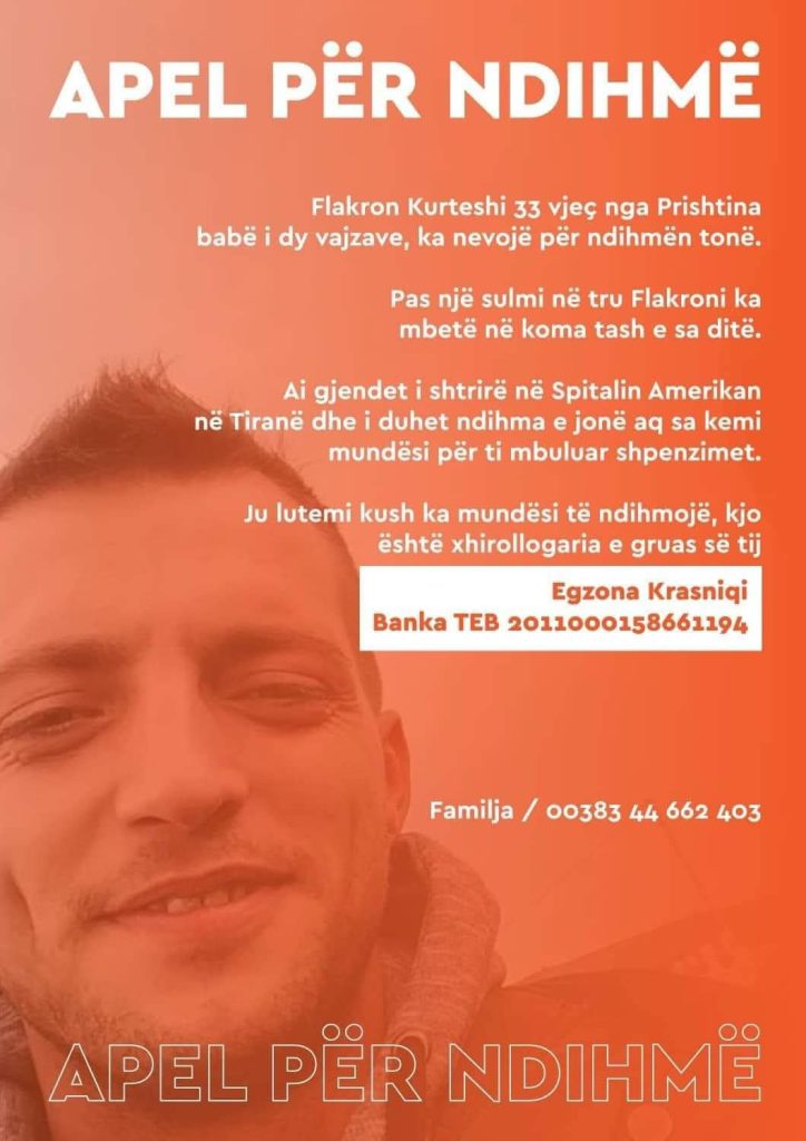 33 vjeçari nga Prishtina, Flakron Kurteshi ka nevojë për ndihmën e të gjithve.