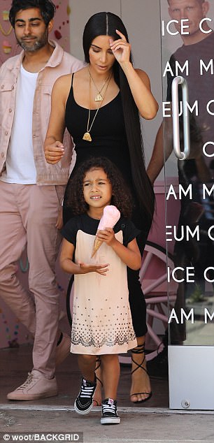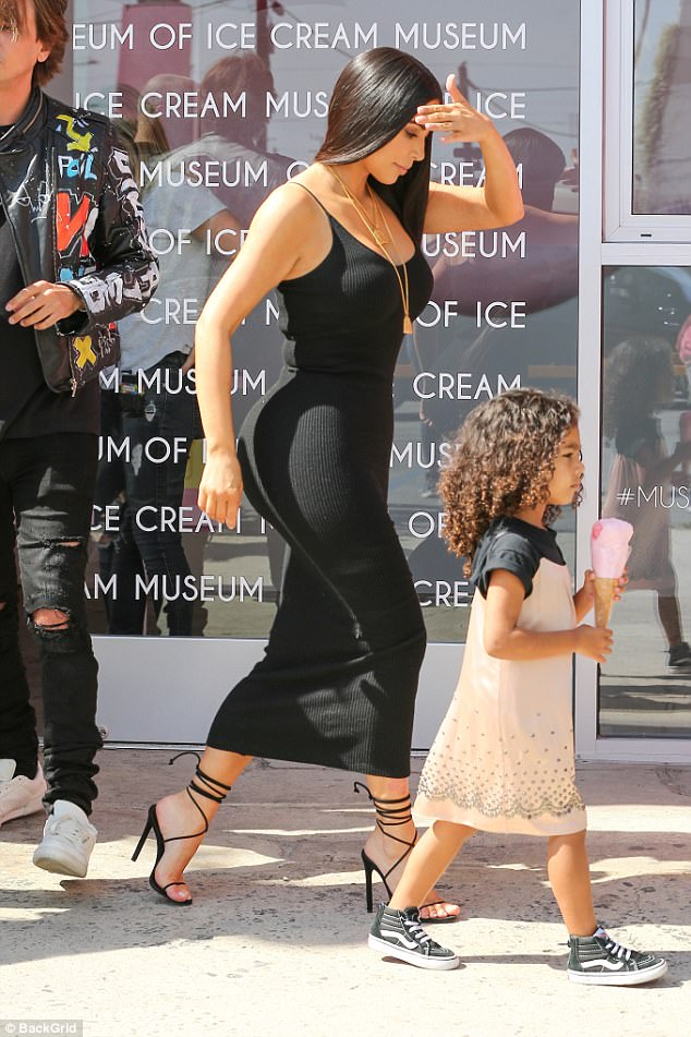 Ajo është fotografuar në shoqërinë e vajzës së saj North, ditën e djeshme. Ylli i reality show ka treguar format e saj bombastike me një fustan të ngushtë, të zi, me rripa.
