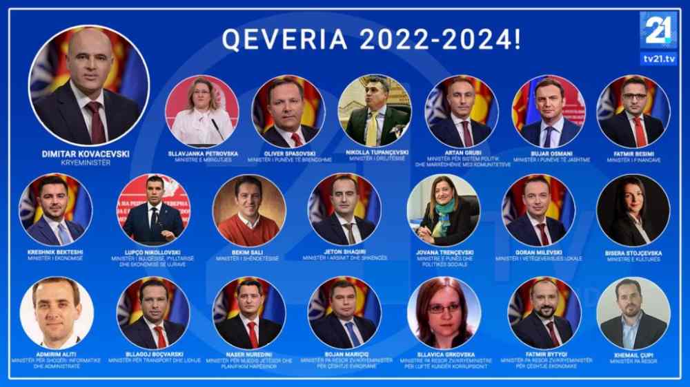 Qeveria e re e Maqedonisë së Veriut, e cila udhëhiqet nga kryeministri Dimitar Kovacevski, i ka 10 ministra shqiptarë, përfshirë këtu ministrin e Jashtëm, të Arsimit, Shëndetësisë, Financave, Ekonomisë, etj., raporton Front Online.