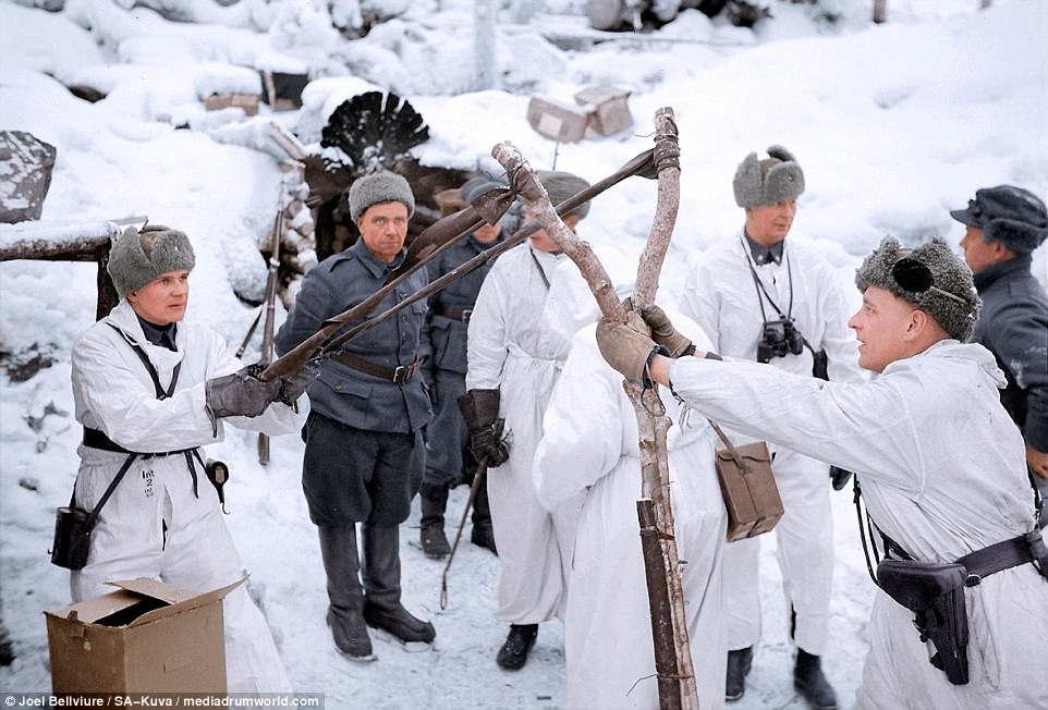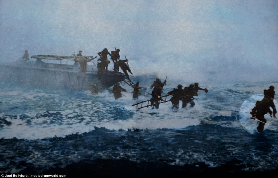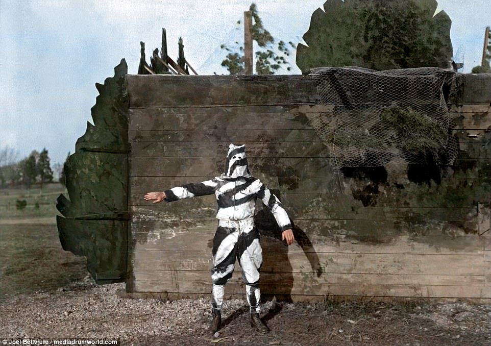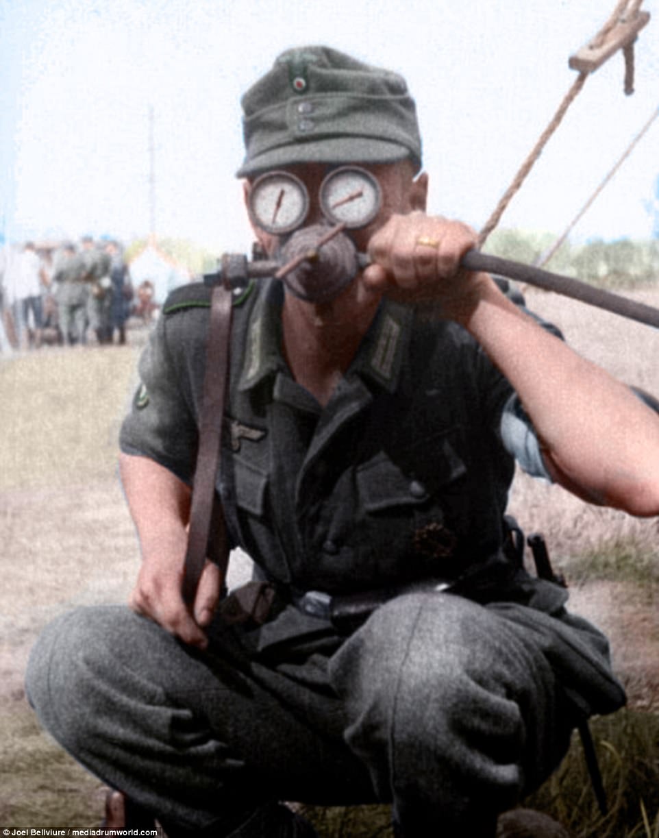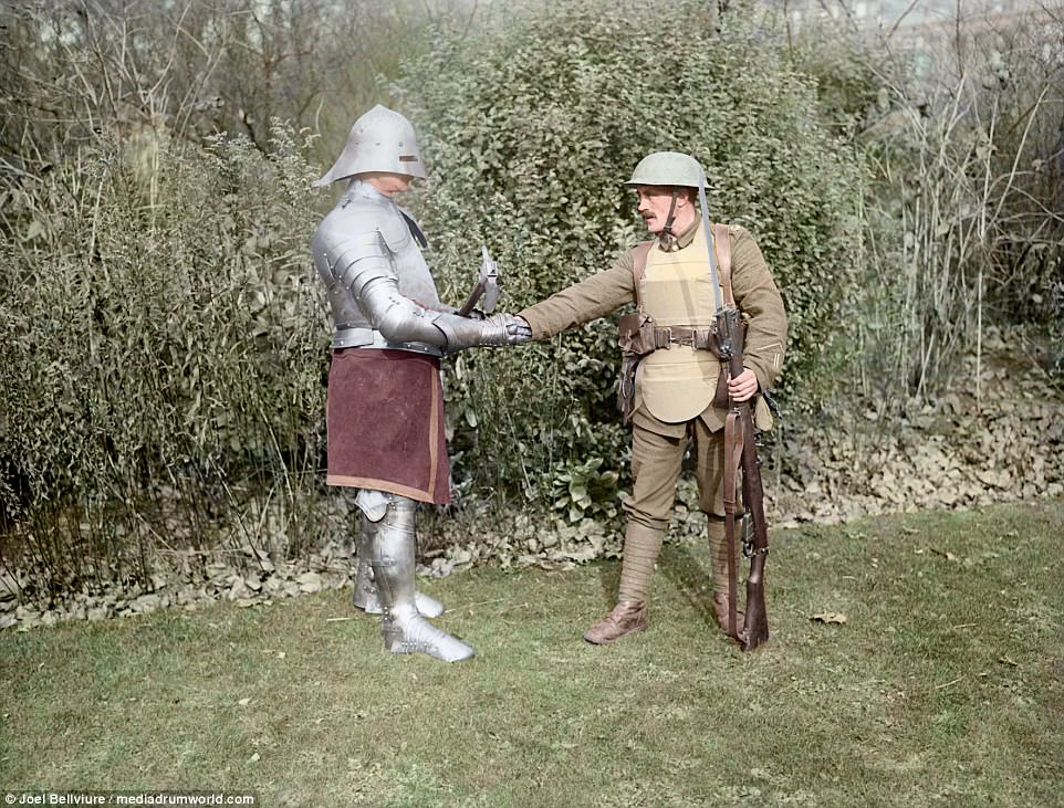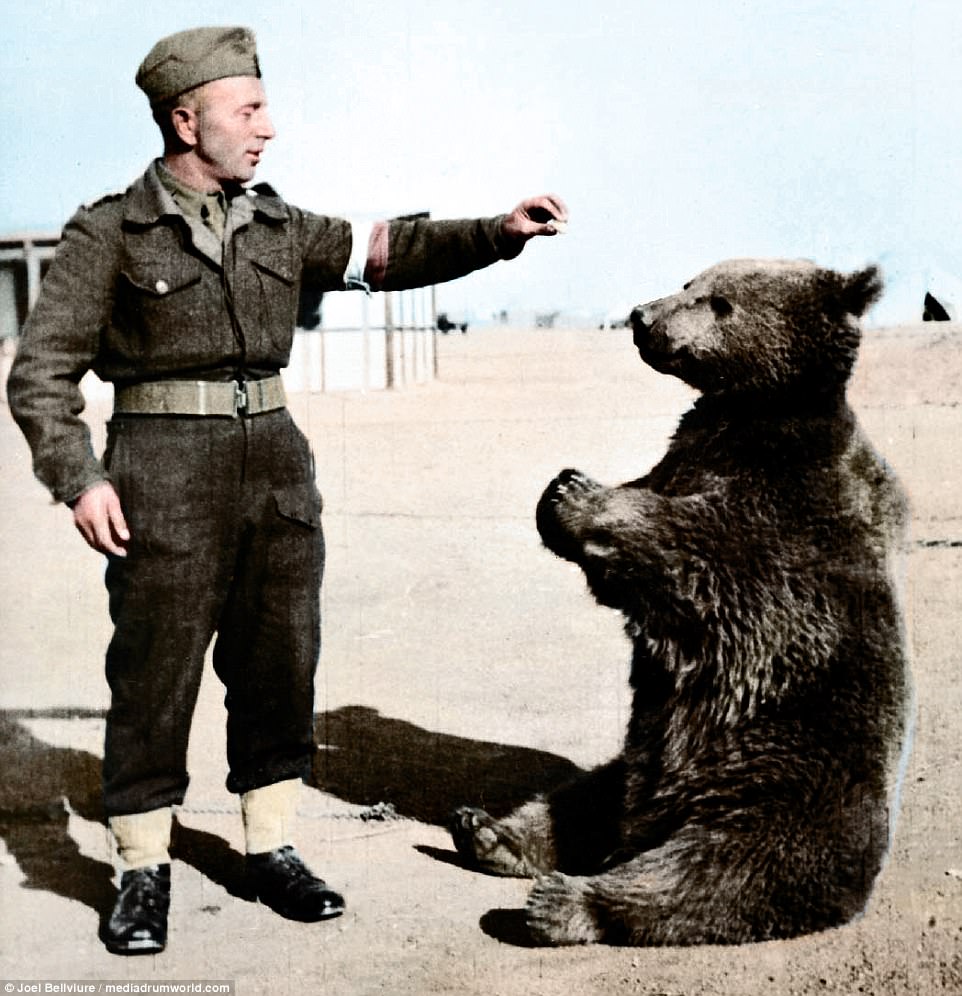 Në fotot e risjella me ngjyra tregohet ndër të tjera një ushtar amerikan, i cili ka veshur një armaturë metali, apo edhe një ari që i quajtur Wojtek, i cili ishte regjistruar si rekrut në ushtrinë polake gjatë Luftës së Dytë Botërore.