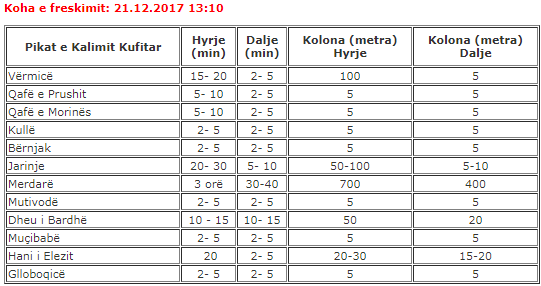 Më poshtë tabela e Qendrës Kombëtare për Menaxhimin e kufirit, e cila është përditësuar në ora 13:10 minuta.