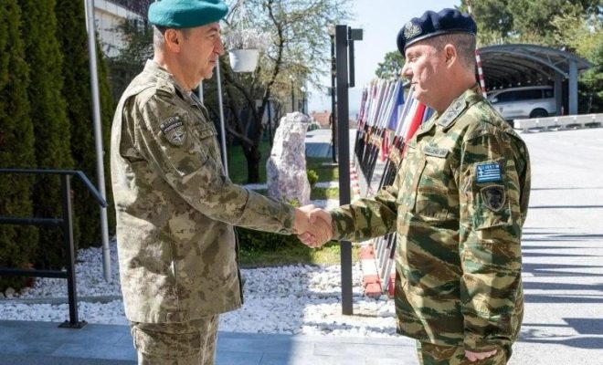 Komandanti i misionit të NATO-s në Kosovë, KFOR, Oezkan Ulutash, ka pritur në takim gjeneralin grek, Alexandros Koufopoulos, me të cilin kanë diskutar për situatën e sigurisë në rajon.