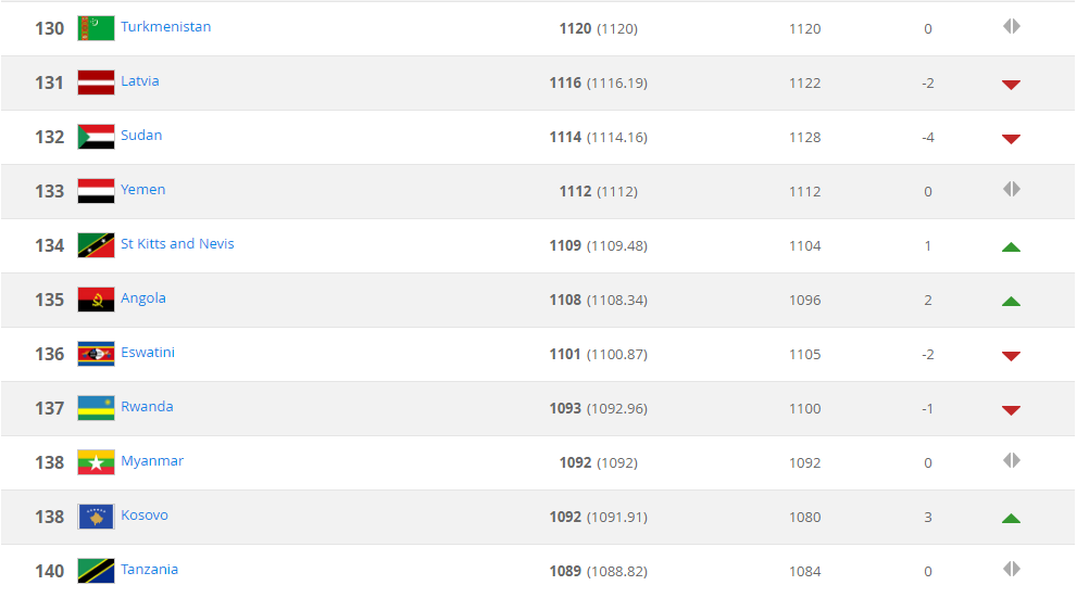 Përfaqësuesja e Kosovës pas rezultateve të mira në miqësore dhe në Ligën e Kombeve ka arritur të ngjitet për tri vende, ku tani renditet në pozitën e 138 me 1080 pikë.